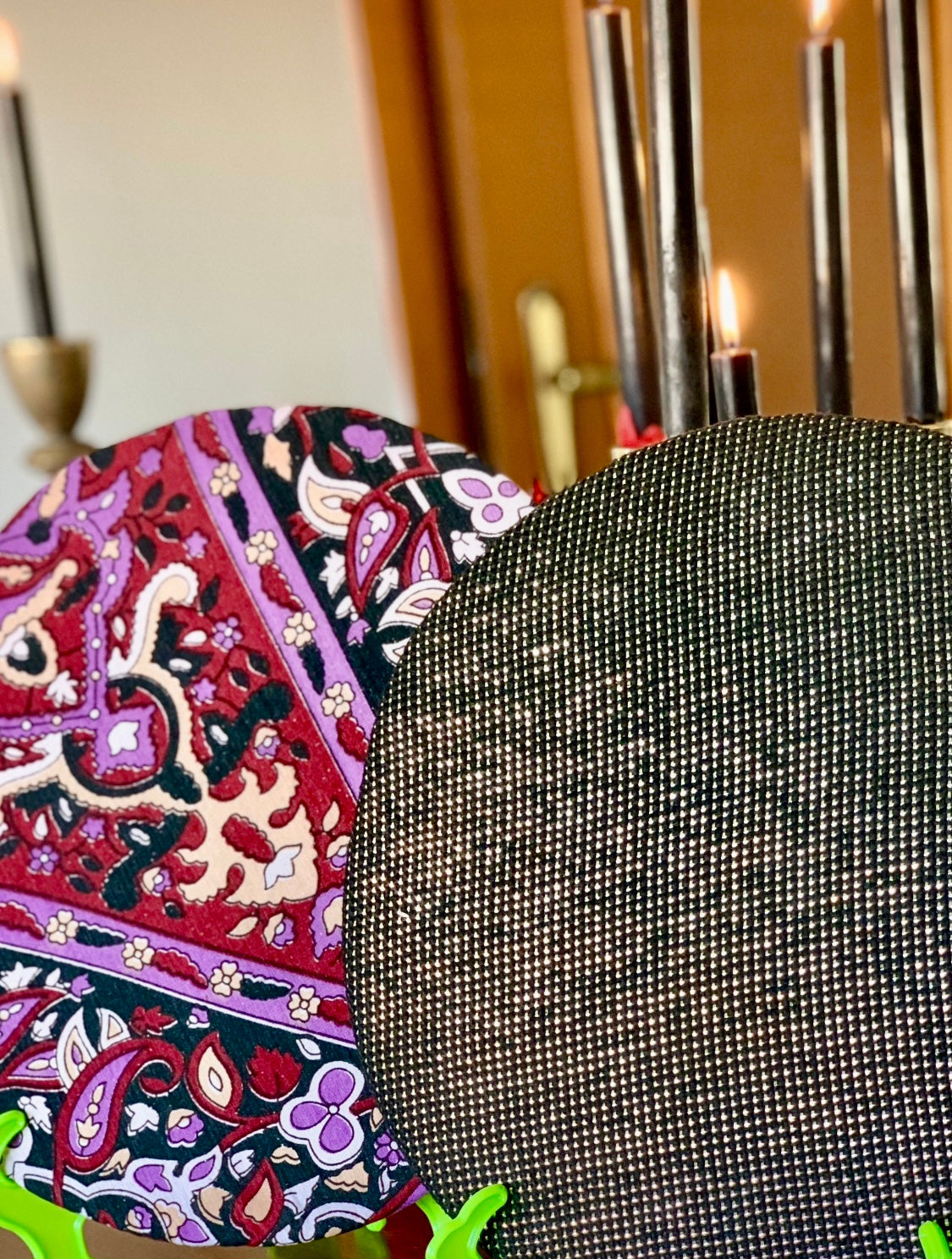 Il Kit MANDALA gioca con dei colori nobili, il nero e l'oro nella sua face secondaria, e un'esplosione di colori nella fantasia mandala nella sua face principale.