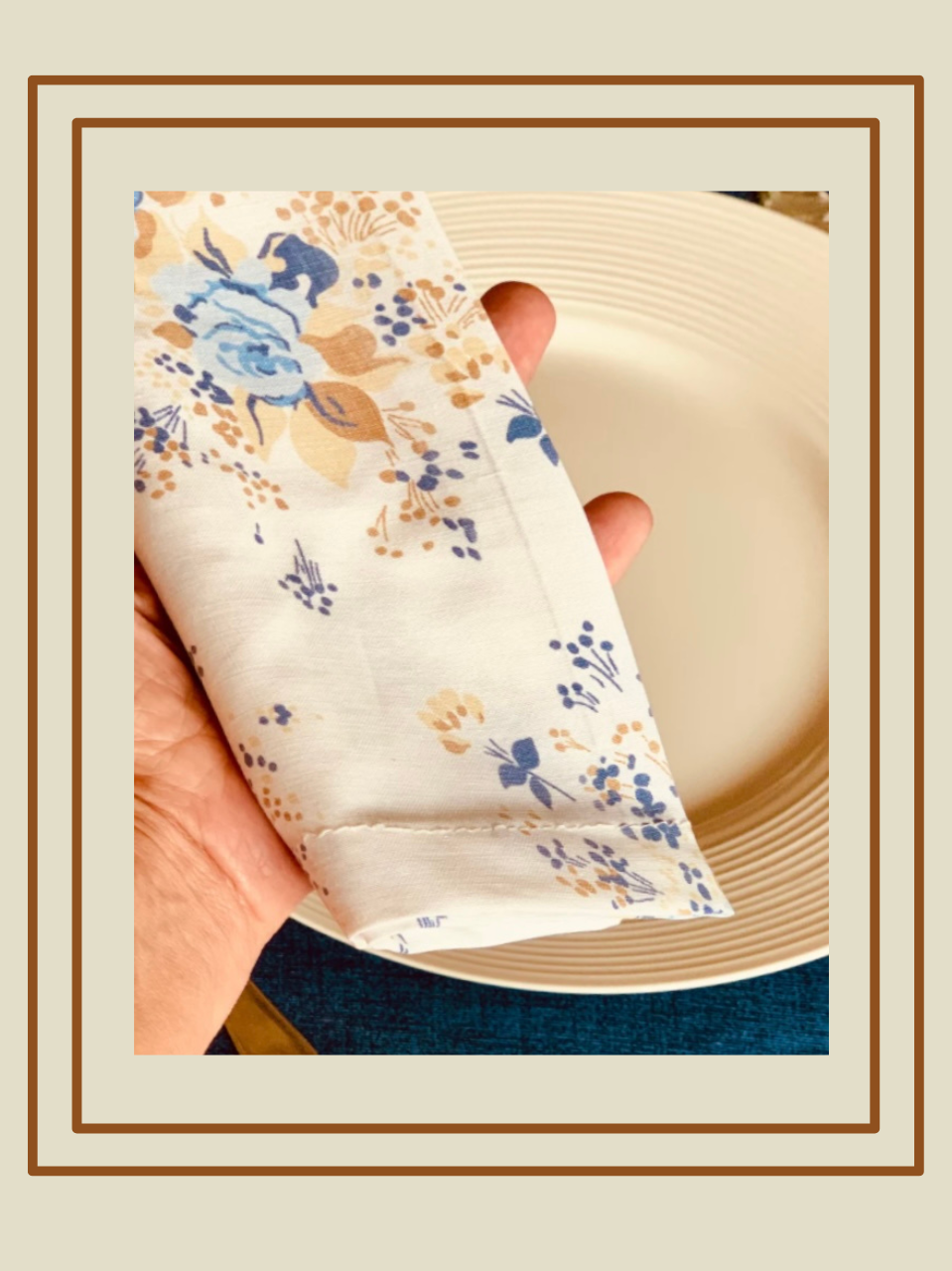 Tovaglioli sfondo chiaro con fiore nel tono di blu .